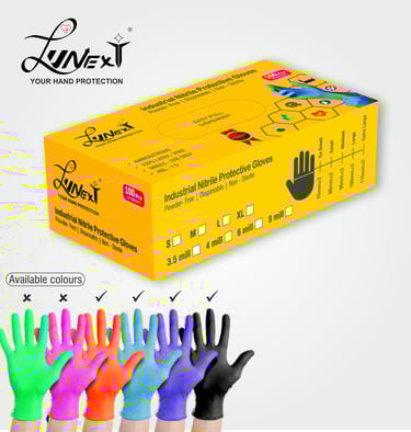 Lunext offers a complete premium range hand gloves of Brands Gloveon, Matig, softhands nitrile powder free gloves at the best prices in Chennai.
